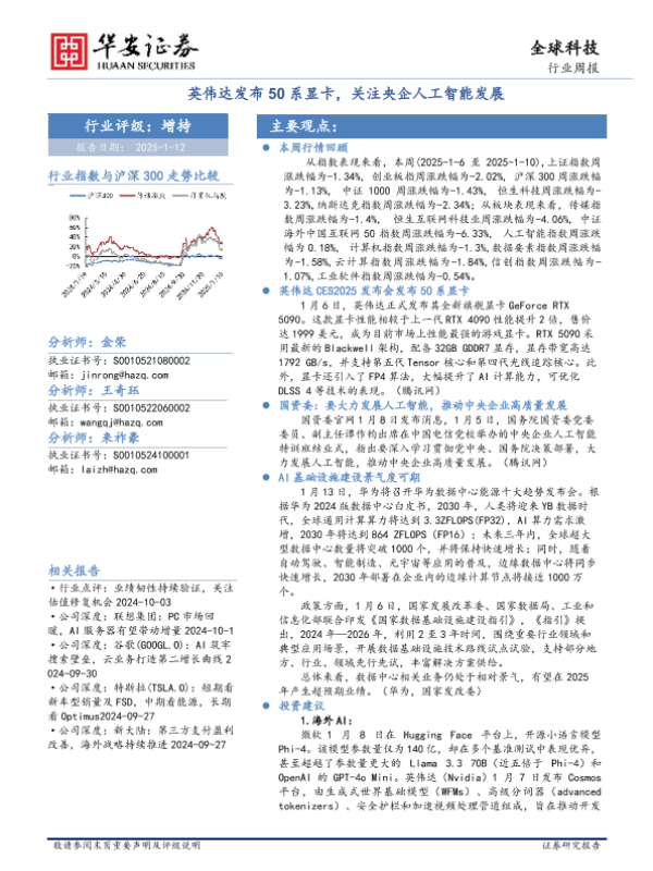 【华安证券】【20250112】全球科技行业周报:英伟达发布50系显卡,关注央企人工智能发展-27页 行业研究