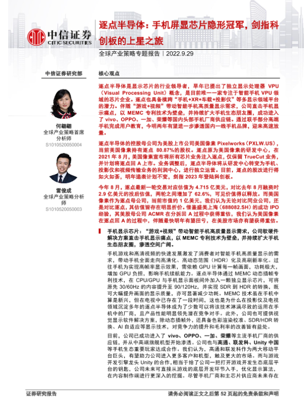 【中信证券】【20220929】全球产业策略专题报告:逐点半导体,手机屏显芯片隐形冠军,剑指科创板的上星之旅-53页 行业研究