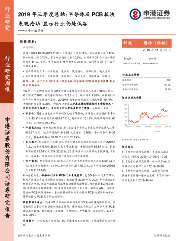 【申港证券】【20191103】2019年三季度总结:半导体及PCB板块表现抢眼 显示行业仍处低谷-16页 行业研究