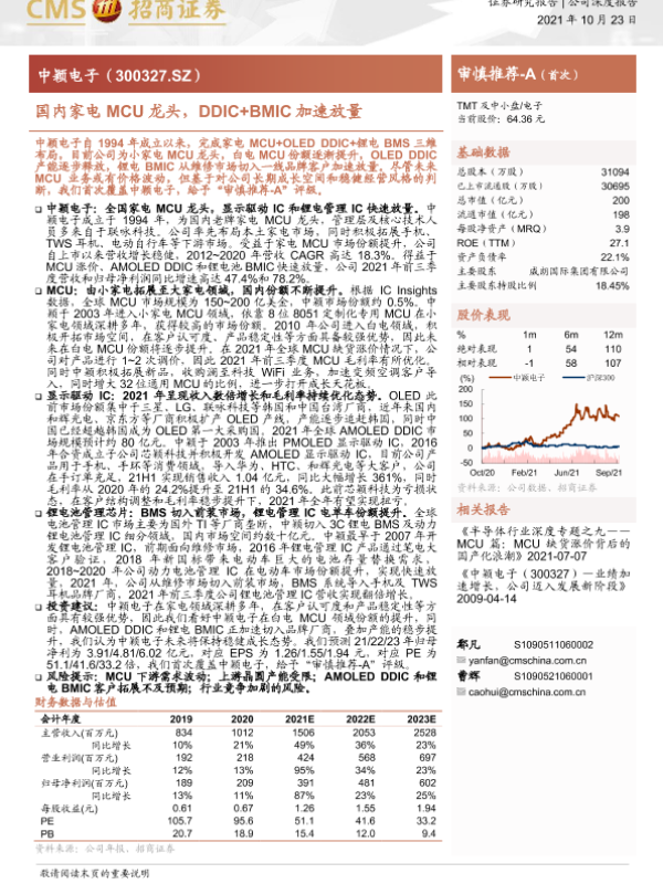 【海通证券】【20211023】中颖电子-300327.SZ-国内家电MCU龙头,DDIC+BMIC加速放量-28页 公司研究