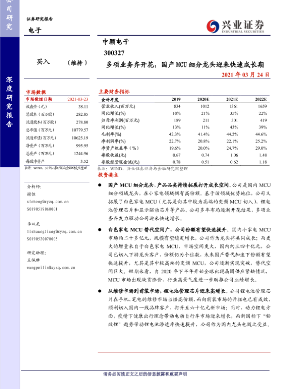【兴业证券】【20210324】多项业务齐开花,国产MCU细分龙头迎来快速成长期-27页 行业研究