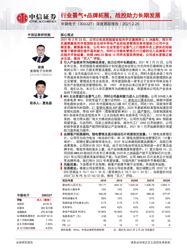 【中信证券】【20210225】20210225-中信证券-中颖电子-300327.SZ-深度跟踪报告:行业景气+品牌拓展,战投助力长期发展-15页 行业研究