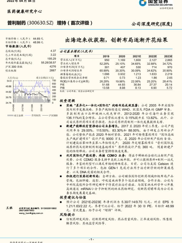 【华创证券】【20210124】20210124-华创证券-普利制药-300630.SZ-深度研究报告:跨越产能障碍,有望迎来新一轮高速成长期-24页 行业研究