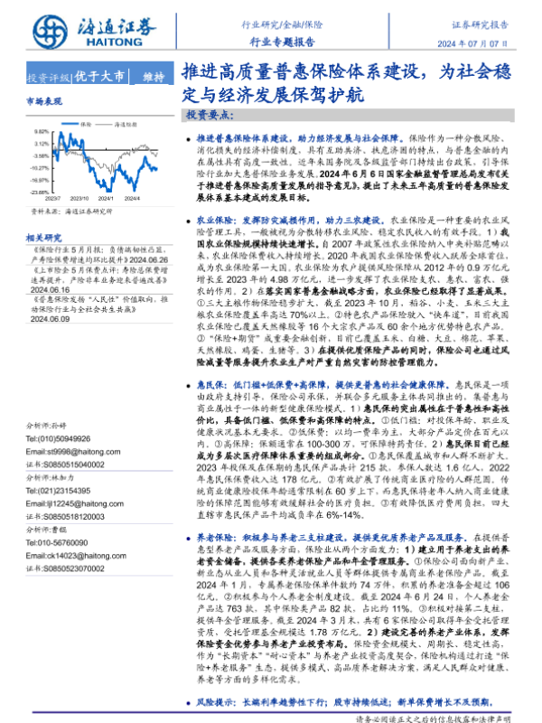 【海通证券】【20240707】2024年11月04日更新-保险行业专题报告:推进高质量普惠保险体系建设为社会稳定与经济发展保驾护航-15页 行业研究