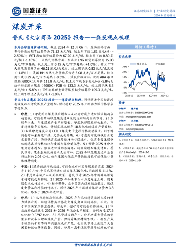 【国盛证券】【20241208】煤炭开采行业煤炭观点梳理:普氏《大宗商品2025》报告-12页 行业研究