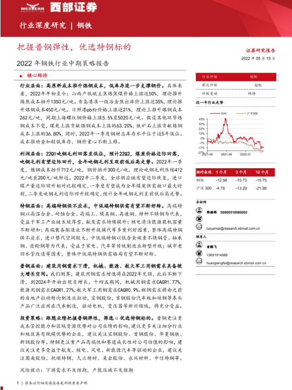 【西部证券】【20220515】2022年钢铁行业中期策略报告:把握普钢弹性,优选特钢标的-27页 行业研究