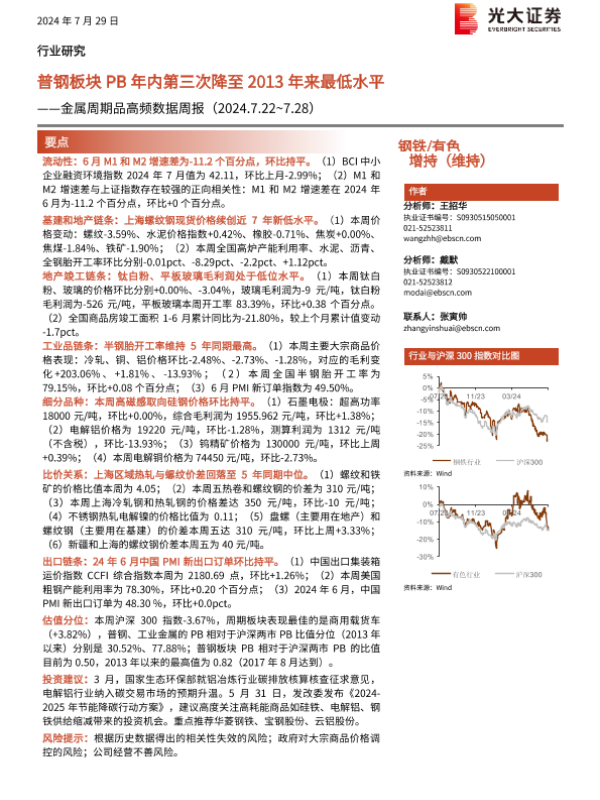 【光大证券】【20240729】20240729-光大证券-钢铁 有色行业金属周期品高频数据周报:普钢板块PB年内第三次降至2013年来最低水平-27页 行业研究