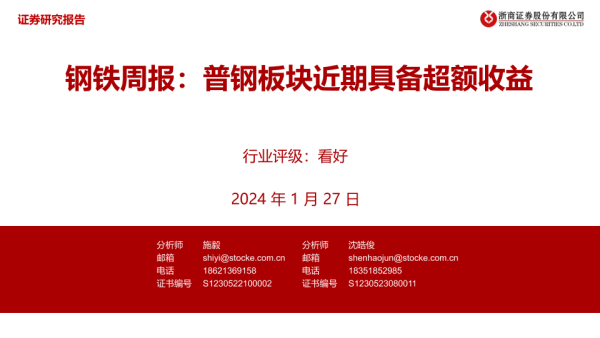 【浙商证券】【20240127】20240127-浙商证券-钢铁周报:普钢板块近期具备超额收益-12页 行业研究