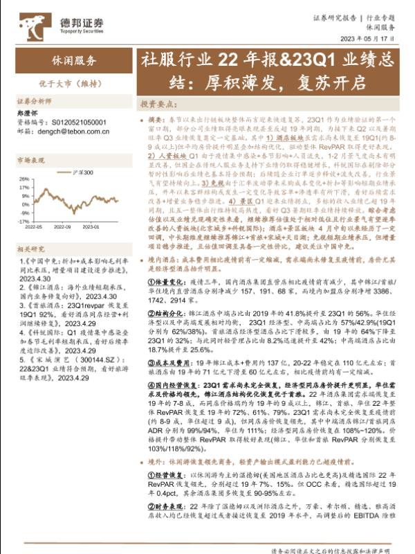 【德邦证券】【20230517】社服行业22年报&23Q1业绩总结:厚积薄发,复苏开启-27页 行业研究