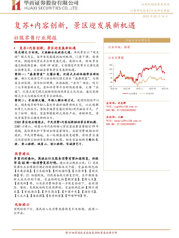 【华西证券】【20230514】社服零售行业周报:复苏+内容创新,景区迎发展新机遇-23页 行业研究