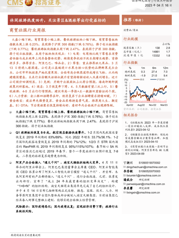 【海通证券】【20230416】商贸社服行业周报:休闲旅游热度回升,关注景区&酒旅等出行受益标的-10页 行业研究