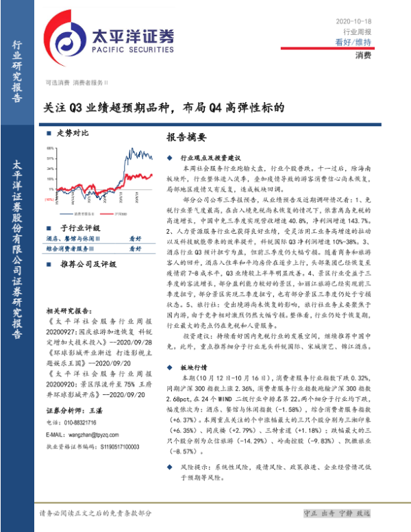 【太平洋证券】【20201018】消费行业周报:关注Q3业绩超预期品种,布局Q4高弹性标的-14页 行业研究