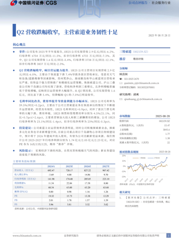 【银河证券】【20250828】三特索道-2025年半年度业绩点评:Q2营收跌幅收窄,主营索道业务韧性十足-3页 证券期货研究报告