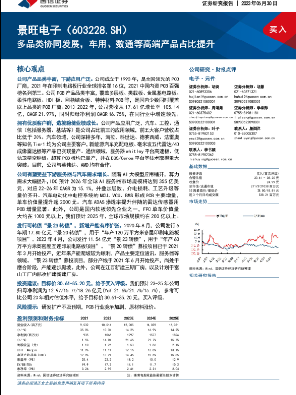 【国信证券】【20230630】景旺电子603228.SH多品类协同发展,车用、数通等高端产品占比提升-19页 行业研究
