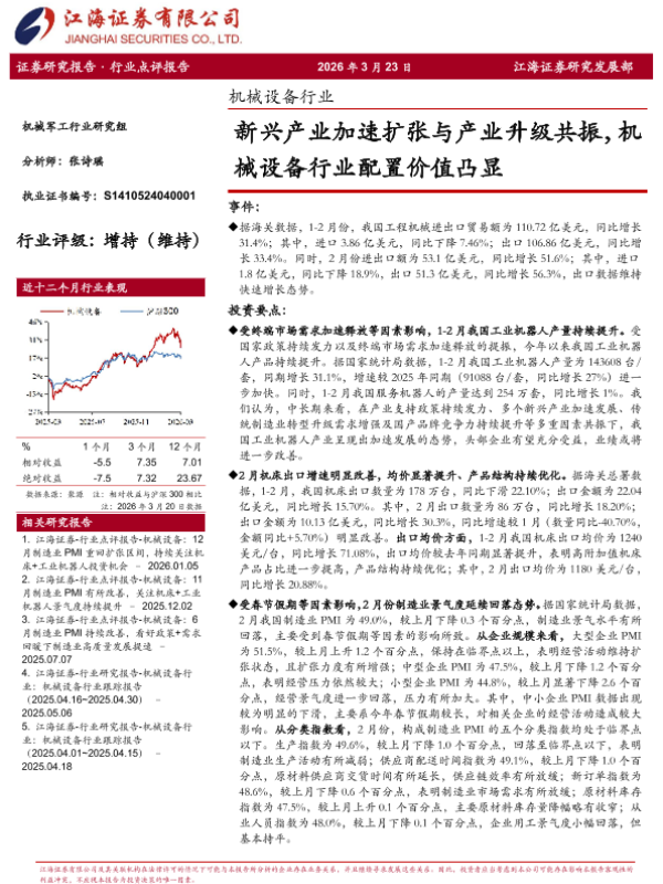 【江海证券】【202603】新兴产业加速扩张与产业升级共振 机械设备行业配置价值凸显-4页 行业研究