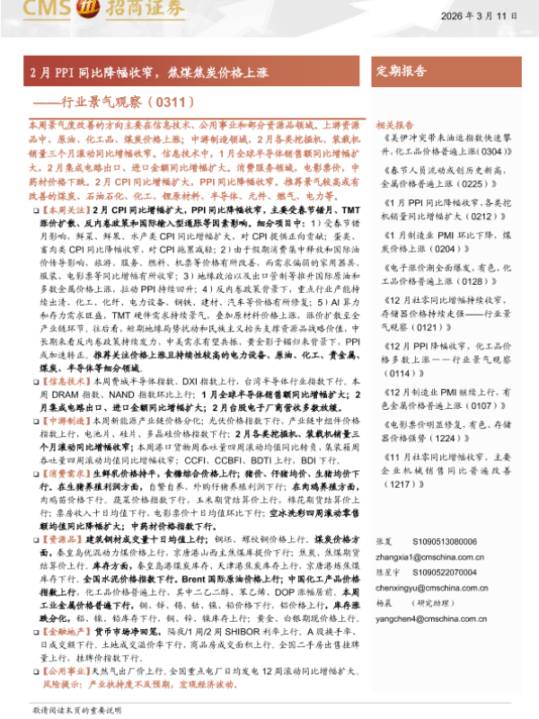 【海通证券】【202603】2月PPI同比降幅收窄,焦煤焦炭价格上涨-32页 证券期货研究报告