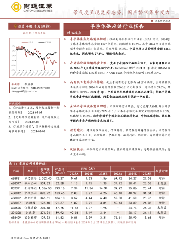 【财通证券】【20240523】半导体行业供应链行业报告:景气度呈现复苏态势,国产替代集中发力-22页 行业研究