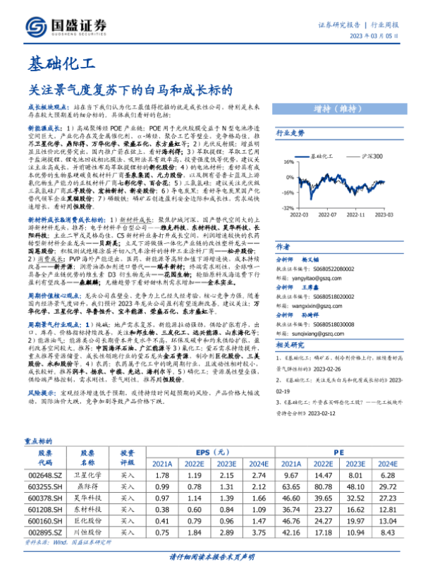 【国盛证券】【20230305】20230305-国盛证券-基础化工行业周报:关注景气度复苏下的白马和成长标的-22页 行业研究