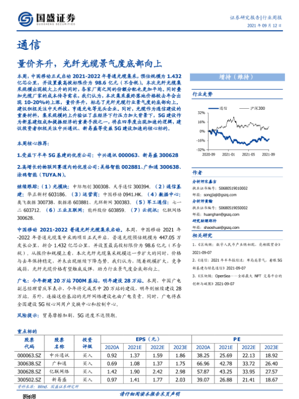 【国盛证券】【20210912】通信行业周报:量价齐升,光纤光缆景气度底部向上-12页 行业研究