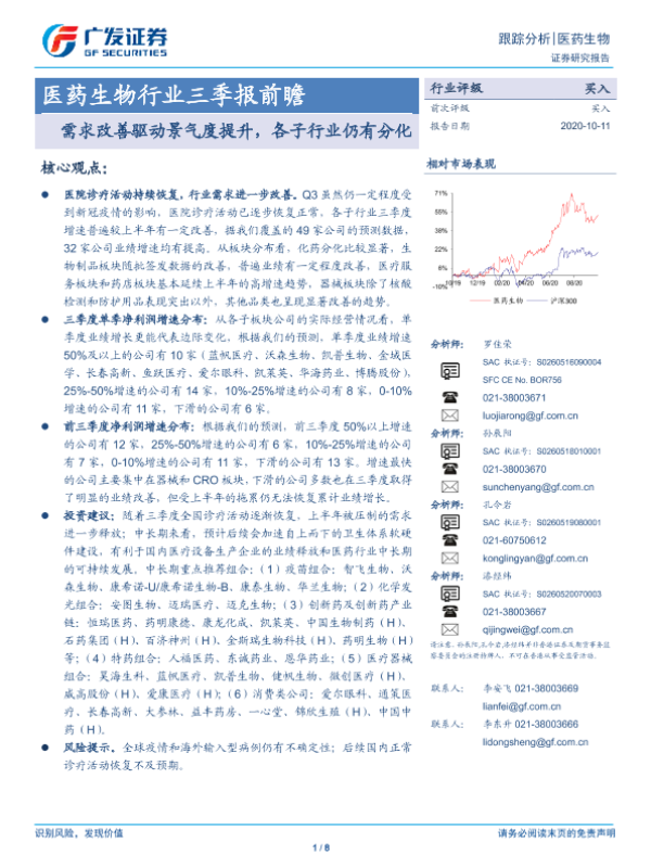 【广发证券】【20201011】医药生物行业三季报前瞻-8页 行业研究