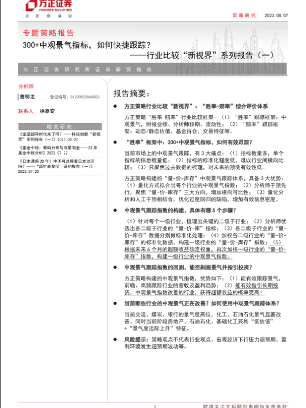 【方正证券】【20230807】行业比较“新视界”系列报告(一):300+中观景气指标,如何快捷跟踪?-17页 行业研究