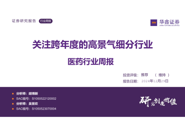 【华鑫证券】【20241229】医药行业周报:关注跨年度的高景气细分行业-32页 行业研究