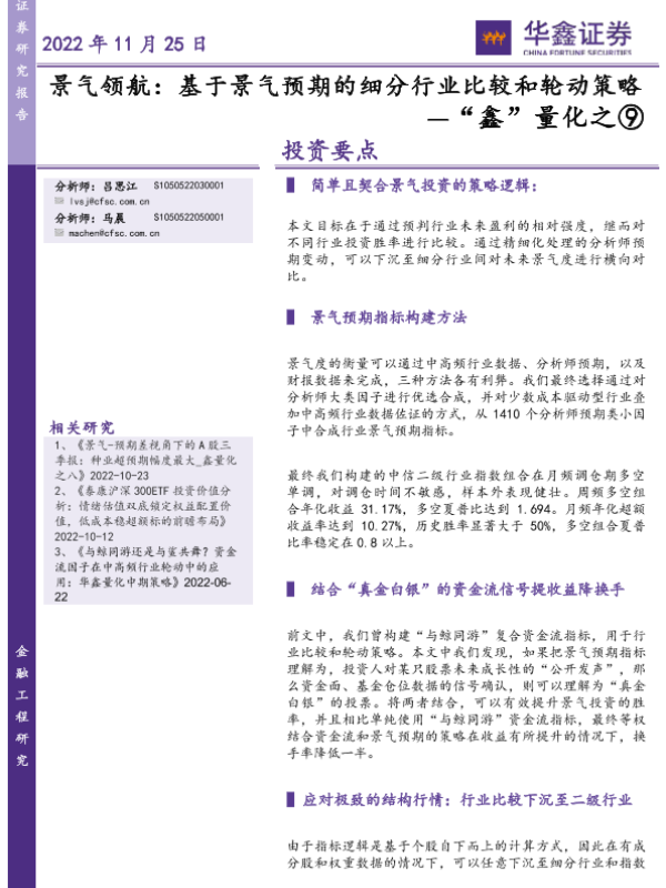 【华鑫证券】【20221125】景气领航:基于景气预期的细分行业比较和轮动策略-29页 行业研究