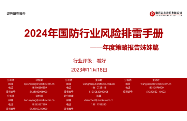 【浙商证券】【20231118】2024年国防行业风险排雷手册:年度策略报告姊妹篇-14页 行业研究