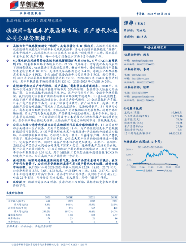 【华创证券】【202203】泰晶科技-603738-深度研究报告:物联网+智能车扩展晶振市场,国产替代加速公司全球份额提升-31页 行业研究