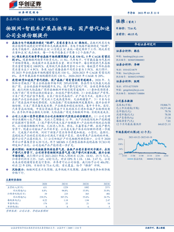 【华创证券】【20220322】20220322-华创证券-泰晶科技-603738.SH-深度研究报告:物联网+智能车扩展晶振市场,国产替代加速公司全球份额提升-31页 行业研究