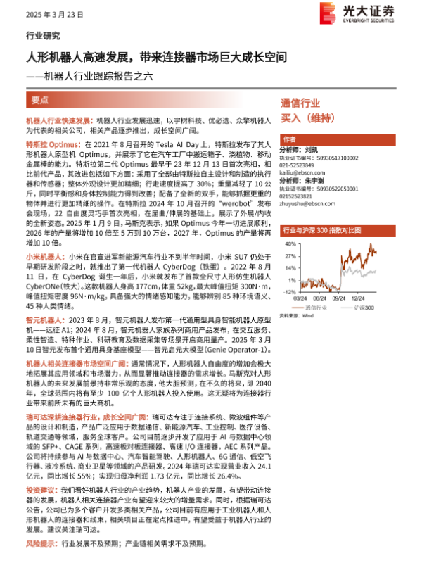 【光大证券】【20250323】机器人行业跟踪报告之六:人形机器人高速发展,带来连接器市场巨大成长空间-12页 行业研究