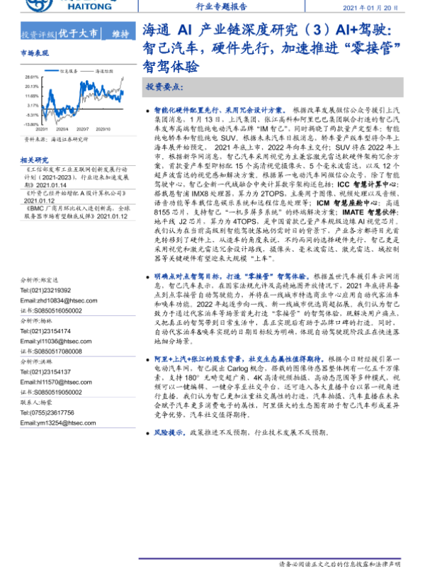【海通证券】【20210120】海通AI产业链深度研究(3)AI+驾驶:智己汽车,硬件先行,加速推进“零接管”智驾体验-2页 行业研究