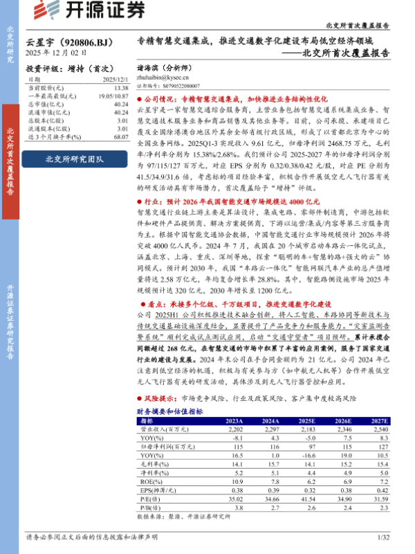 【开源证券】【202512】北交所首次覆盖报告:专精智慧交通集成,推进交通数字化建设布局低空经济领域-32页 公司研究
