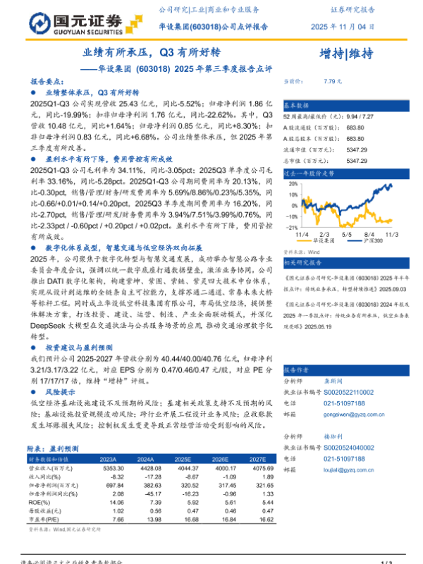 【国元证券】【202511】业绩有所承压,Q3有所好转——华设集团(603018) 2025年第三季度报告点评-3页 公司研究