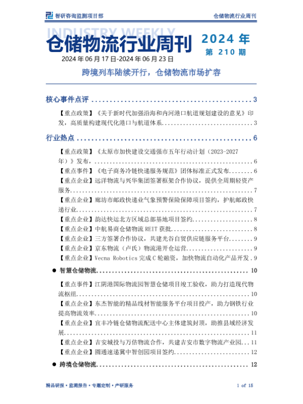 【智研咨询监测项目部】【202406】仓储物流行业周刊:跨境列车陆续开行,仓储物流市场扩容-15页 行业研究