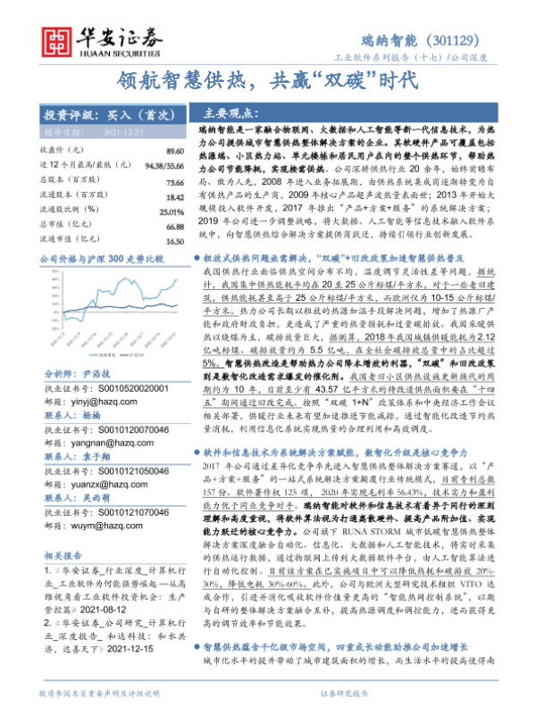 【东方证券】【20221122】瑞纳智能-301129.SZ-供热节能智能化升级大势所趋,智慧供热迎来发展契机-28页 行业研究