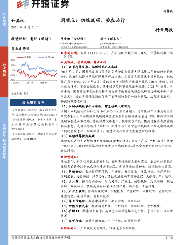 【开源证券】【20211121】20211121-开源证券-计算机周观点:供热减碳,势在必行-8页 行业研究