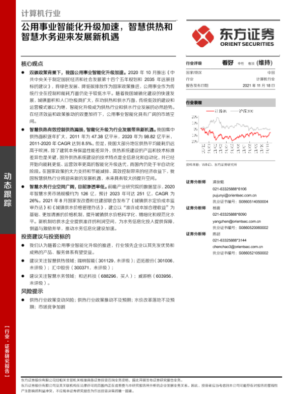 【东方证券】【20211118】计算机行业:公用事业智能化升级加速,智慧供热和智慧水务迎来发展新机遇-18页 行业研究