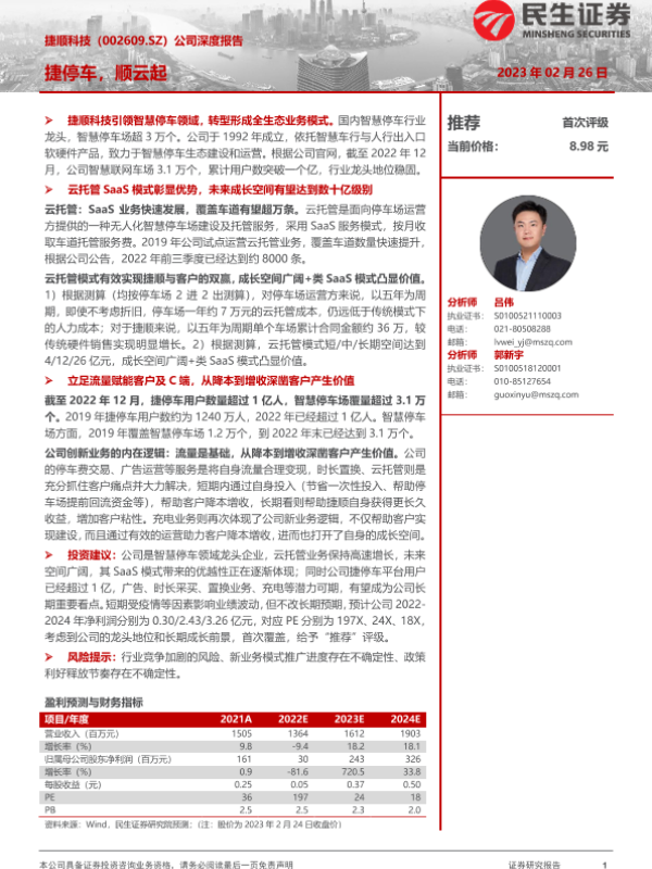 【民生证券】【20230226】捷顺科技-公司深度报告:捷停车,顺云起-32页 行业研究