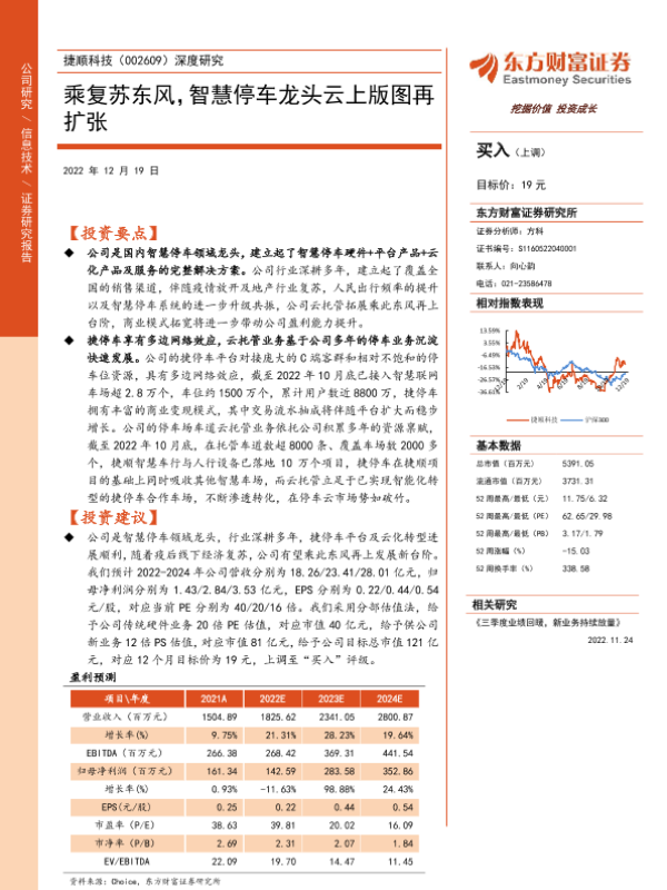 【东方财富证券】【20221219】20221219-东方财富证券-捷顺科技-002609.SZ-深度研究:乘复苏东风,智慧停车龙头云上版图再扩张-26页 行业研究