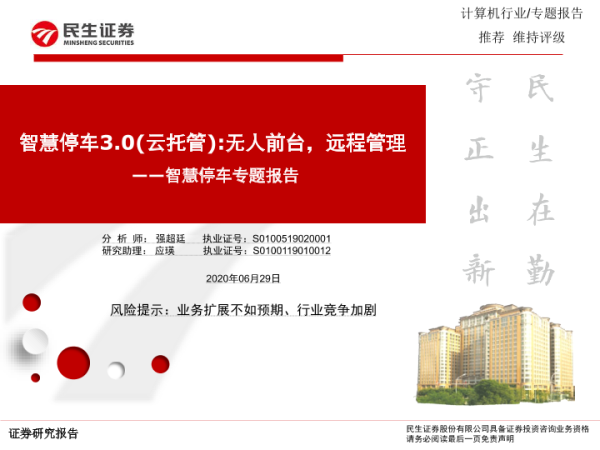 【民生证券】【20200629】智慧停车3.0(云托管) 无人前台,远程管理——智慧停车专题报告-20页 行业研究