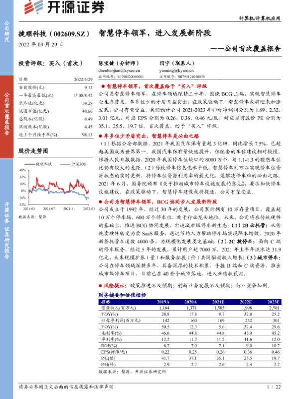 【开源证券】【20220329】捷顺科技-002609.SZ-公司首次覆盖报告:智慧停车领军,进入发展新阶段-22页 行业研究