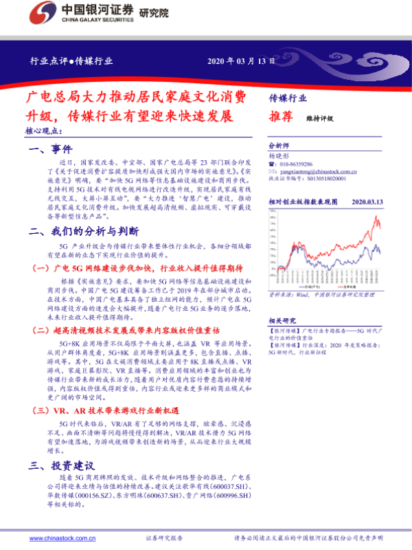 【银河证券】【20200313】传媒行业:广电总局大力推动居民家庭文化消费升级,传媒行业有望迎来快速发展-4页 行业研究