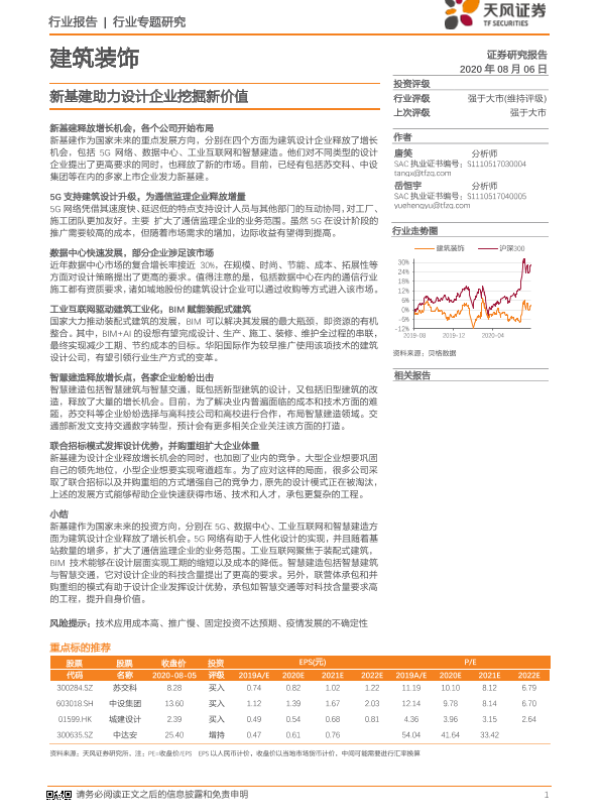 【天风证券】【20200806】建筑装饰行业专题研究:新基建助力设计企业挖掘新价值-16页 行业研究