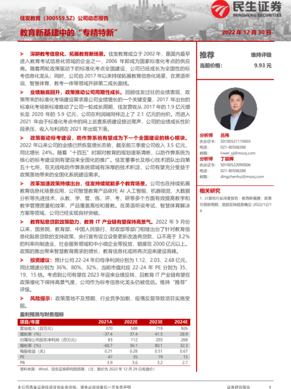 【民生证券】【20221230】深度报告-20221230-民生证券-佳发教育-300559.SZ-公司动态报告_教育新基建中的_专精特新_-20页 行业研究