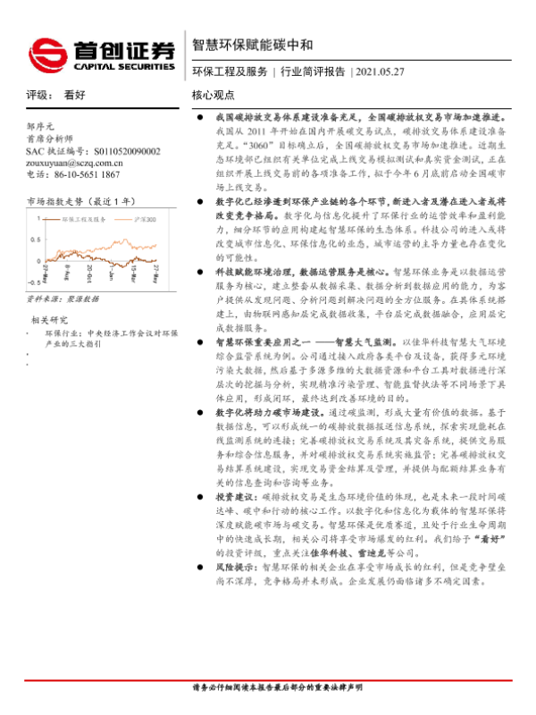【首创证券】【20210527】智慧环保赋能碳中和-9页 行业研究