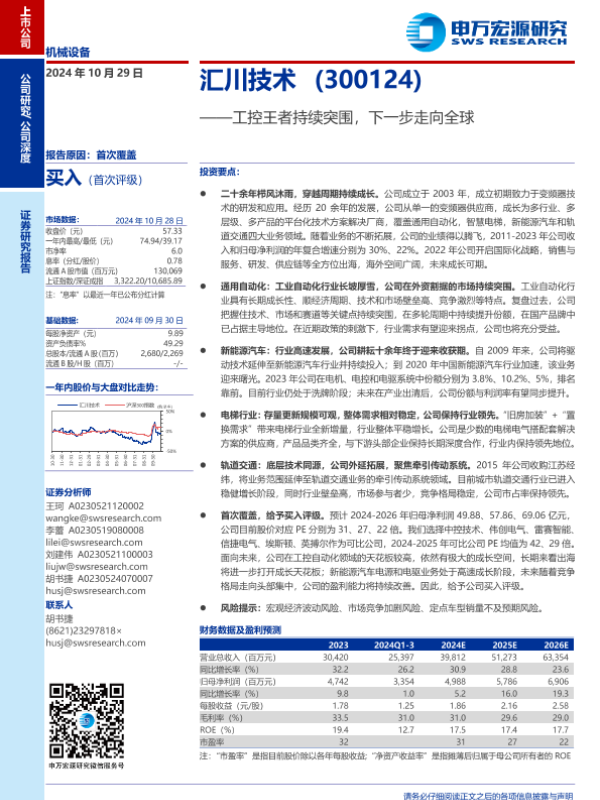 【申万宏源】【20241029】汇川技术(300124)工控王者持续突围,下一步走向全球-48页 行业研究