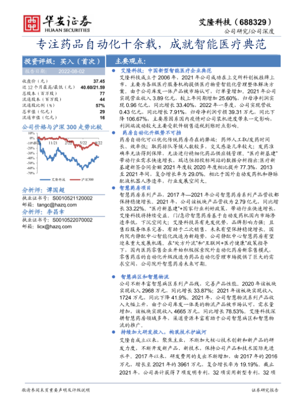 【华安证券】【20220802】专注药品自动化十余载,成就智能医疗典范-27页 行业研究