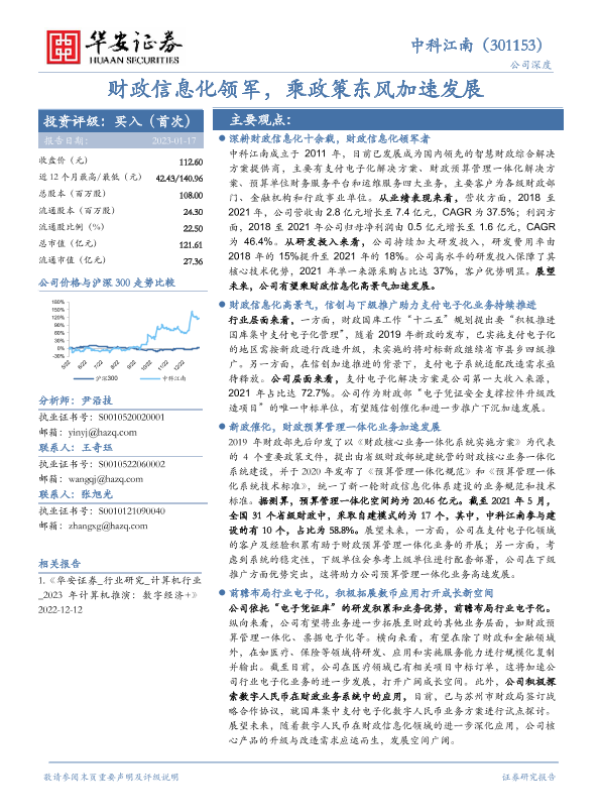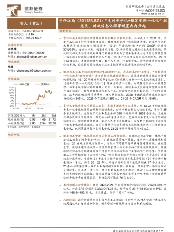 【德邦证券】【20230312】中科江南(301153)“支付电子化+预算管理一体化”双龙头,财政信息化璀璨新星冉冉升起-36页 行业研究