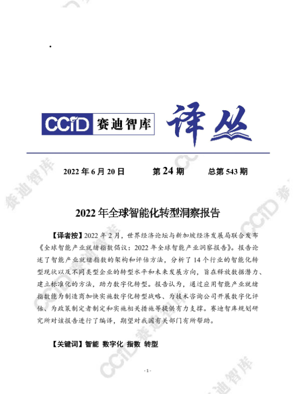 【世界经济论坛与新加坡经济发展局】【202202】2022年全球智能化转型洞察报告-20页 行业研究